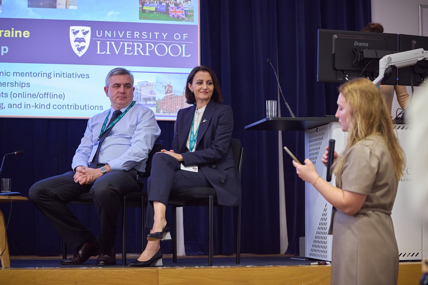 Tetyana Mayboroda and Professor Igor Potapov presented the SumDU-Liverpool case, focusing on the partnership’s impact on the SumDU academic community; the stories of cooperation and support that enable researchers to continue their work and complete their dissertations; and the crucial role of humanity, trust and resilience as the foundation of this successful partnership.
