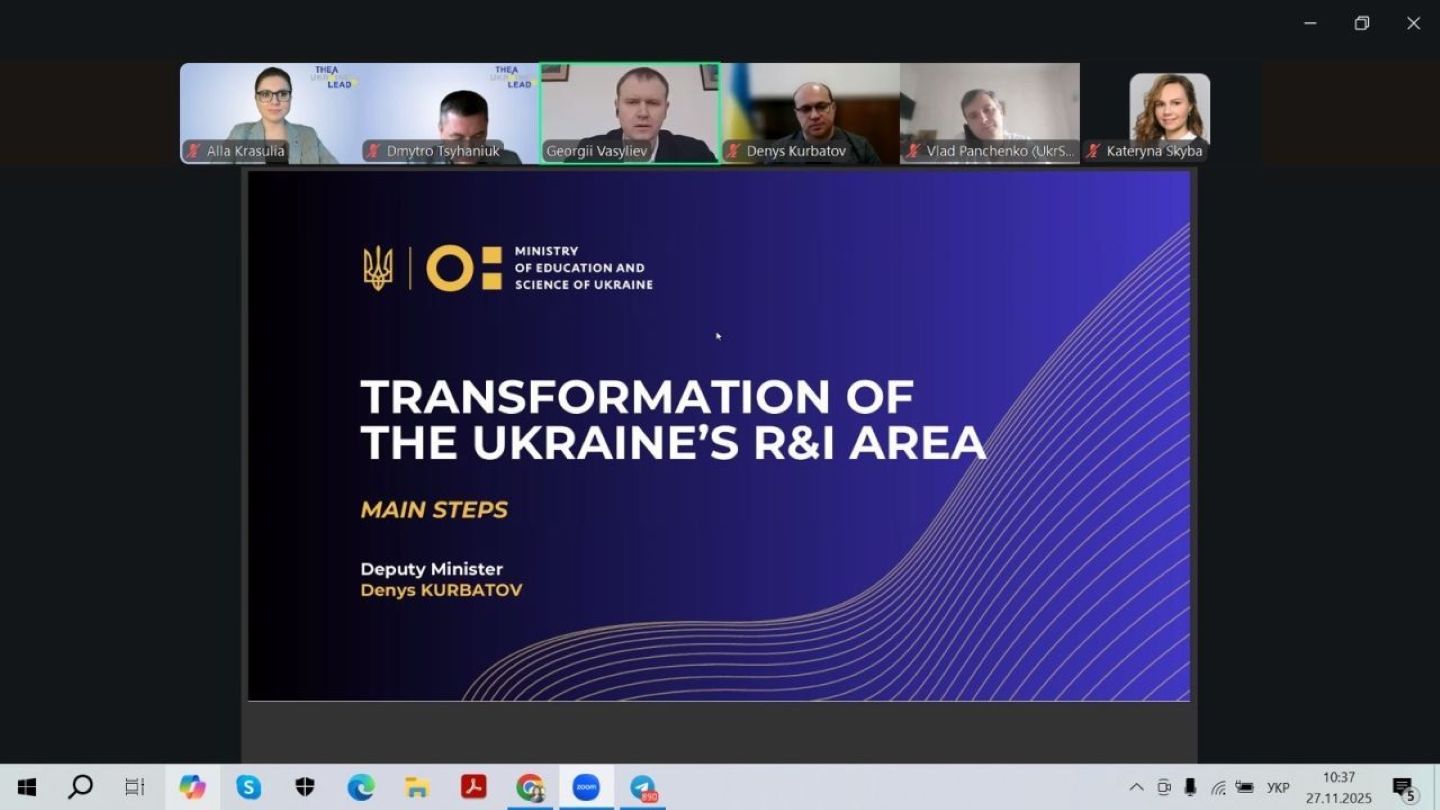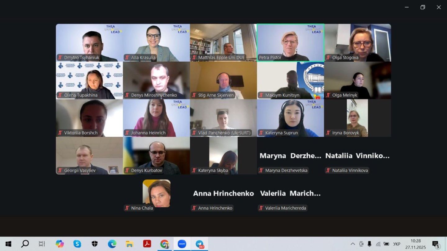 The event, held online on 27 November 2025, became the first large-scale political-academic discussion within THEA Ukraine Lead. Under the theme “War, Displacement, and Opportunity: Shaping the Next Era of Research and Higher Education in Ukraine,” it brought together representatives of universities, government institutions, international organizations, and alumni of previous THEA programs.
