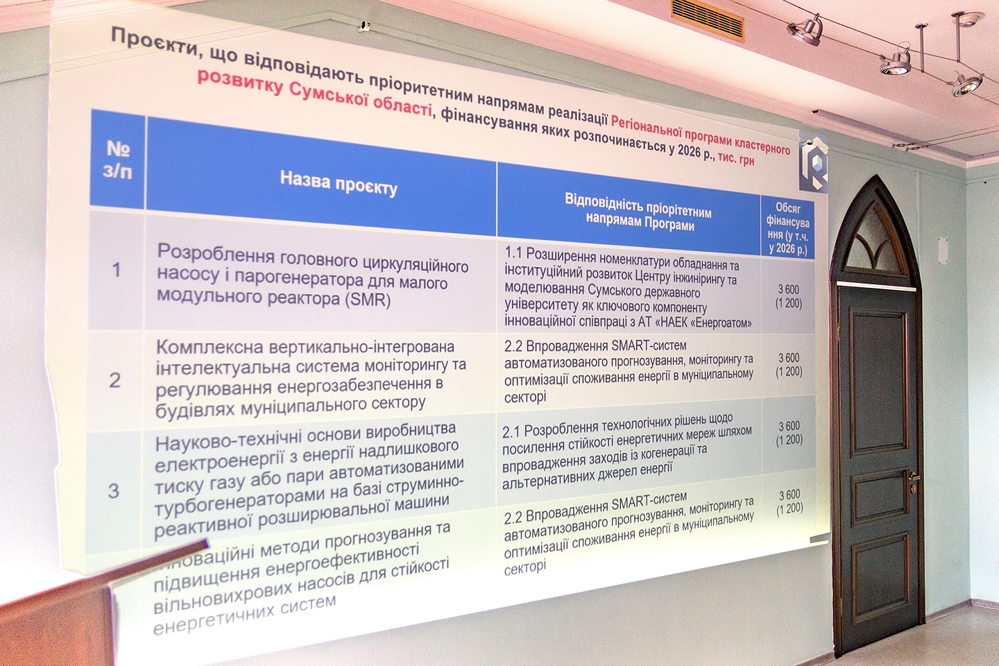 On 14 January 2026, a regional round table was held to present and validate projects within the European Clusters4Regions initiative. The event brought together representatives of government agencies, cluster associations, businesses, experts, and higher education institutions. Also, there were SumDU specialists.