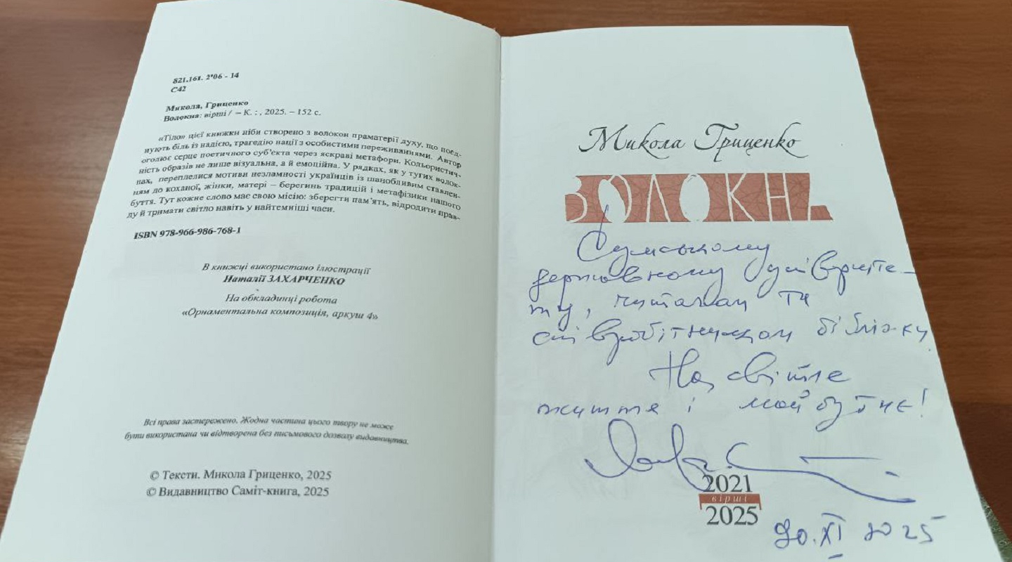 20 листопада університетський простір Сумського державного університету знову став локацією культурної події – презентації 13-ї поетичної збірки відомого українського поета, прозаїка, публіциста, нашого земляка Миколи ГРИЦЕНКА.
