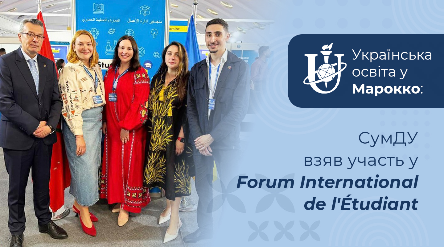 Сумський державний університет долучився до щорічної міжнародної виставки Forum International de l'Étudiant, що проходила з 16 по 19 квітня у Касабланці. Разом з чотирма іншими українськими закладами вищої освіти СумДУ презентував свої програми на об'єднаному стенді «Study in Ukraine».