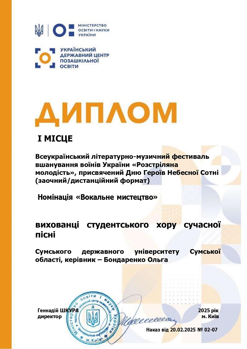 Студенти СумДУ, учасники творчих колективів Культурно-мистецького центру, гідно представили наш університет на всеукраїнському літературно-музичному фестивалі вшанування воїнів України «Розстріляна молодість», присвяченому Дню Героїв Небесної Сотні.
