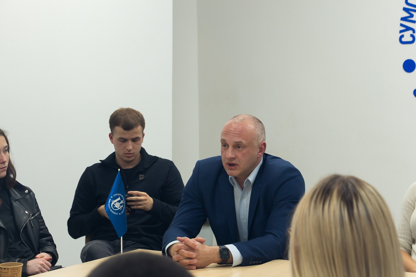 На початку зустрічі студенти познайомилися з діяльністю профспілки та її можливостями. А головною несподіванкою став візит головного хірурга Сумської області, кандидата медичних наук, доцента Сергія КОБИЛЕЦЬКОГО. Він – перший лікар у Сумській області, який провів трансплантацію нирки, виконав понад 2000 лапароскопічних операцій на черевній порожнині, більше 10 років виїжджав по санавіації в найвіддаленіші куточки регіону. Він також входить до керівництва правління Асоціації хірургів України.