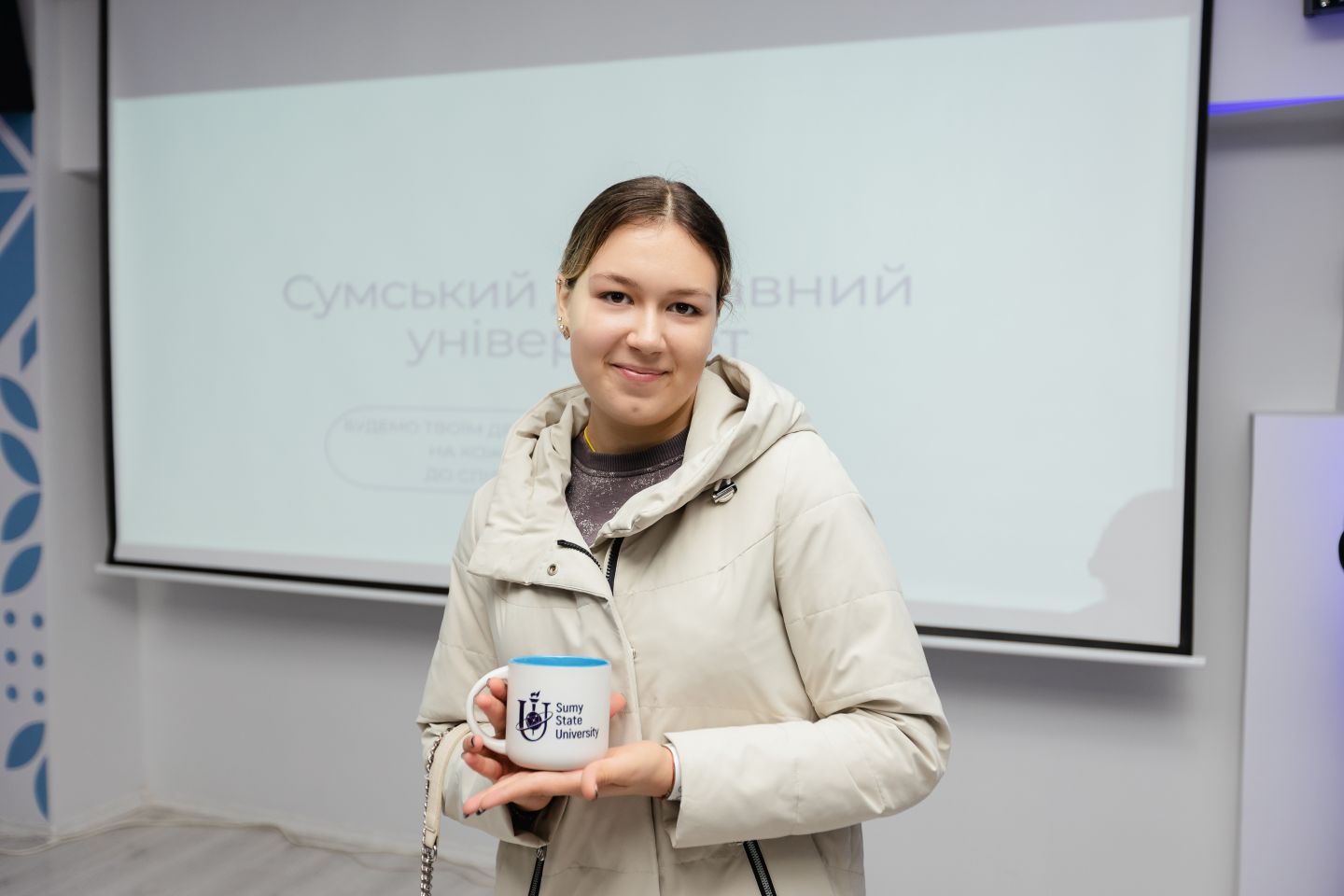 «Я вже обрала СумДУ і спеціальність, на яку хочу вступати, але з цікавістю відвідала всі локації. Усі презентації були пізнавальні і корисні. Відчуття від заходу дуже позитивні. Відчувається, що в університеті приємна, дружня атмосфера», – підкреслила абітурієнтка Марія.