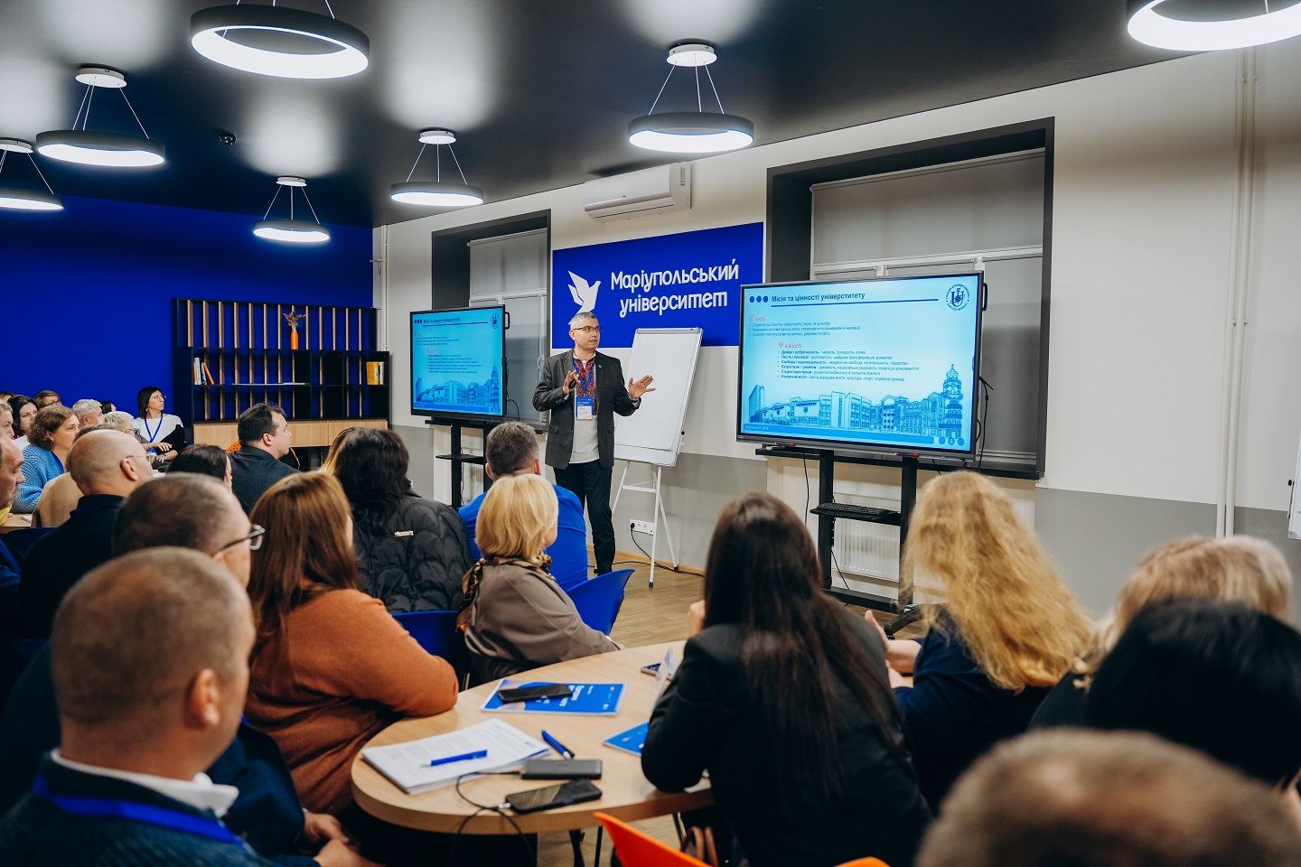 З 7 по 10 жовтня команда СумДУ проходила інтенсивне навчання в Києві на базі Маріупольського державного університету. Університет представляли: проректор з науково-педагогічної роботи Іван КОЗІЙ, начальник відділу стратегічного аналізу та планування розвитку персоналу Аліна ВИСОЧИНА, декан факультету електроніки та інформаційних технологій Юрій ВОЛК, заступник директора ННМІ з навчально-методичної роботи Вікторія ПЕТРАШЕНКО, начальник відділу бізнес-процесів Ярина САМУСЕВИЧ.