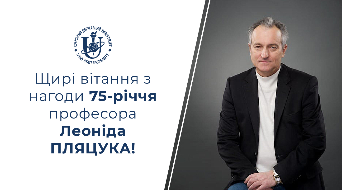 Сумський державний університет щиро вітає з ювілейною датою народження доктора технічних наук, професора, завідувача кафедри екології та природозахисних технологій Леоніда Дмитровича ПЛЯЦУКА!