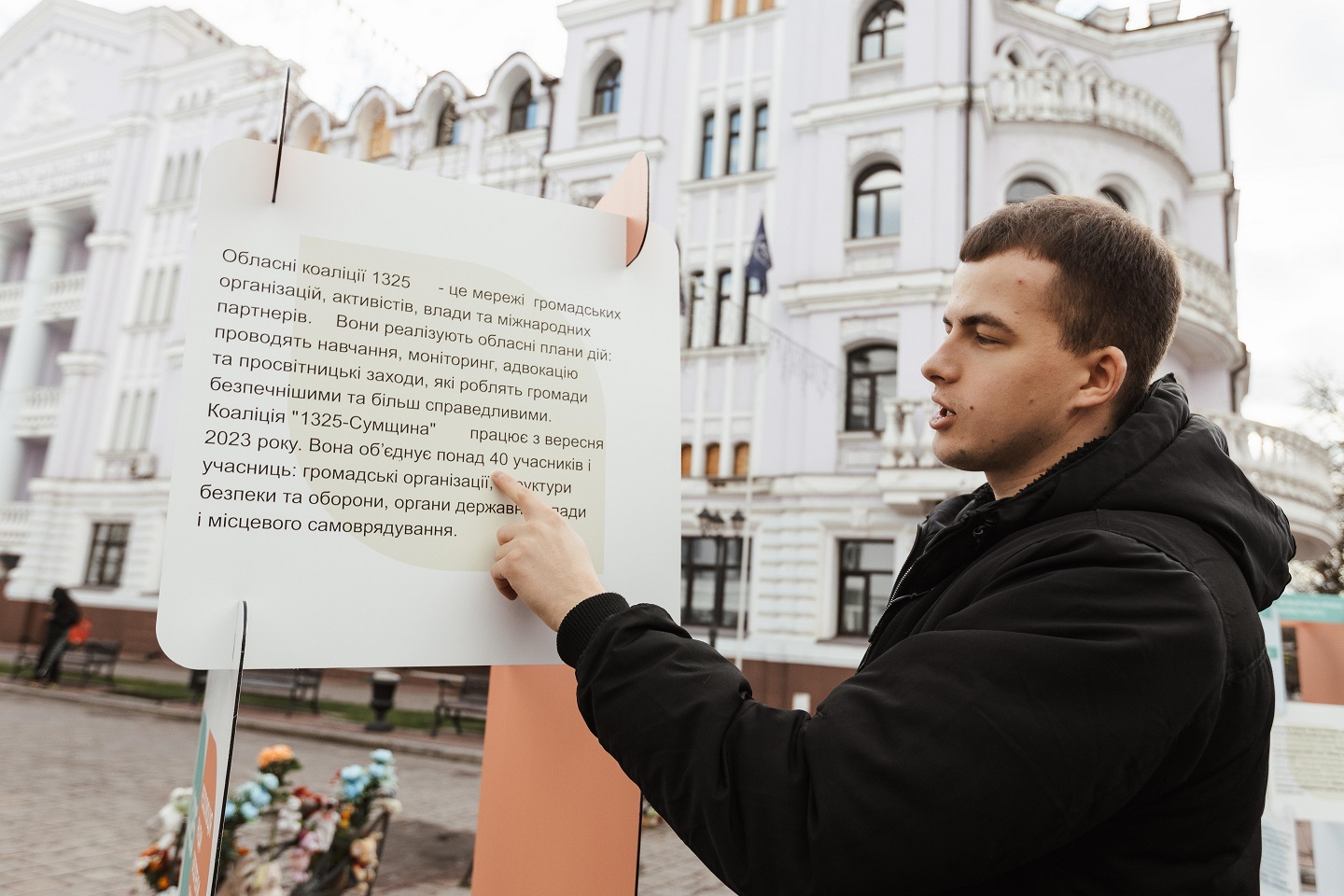 31 жовтня на базі Сумського державного університету відбувся регіональний форум-інсталяція «Голос миру ‒ жіночий», присвячений 25-річчю ухвалення Резолюції Ради Безпеки ООН 1325 «Жінки, мир, безпека». Організатором події виступила коаліція «1325-Сумщина» за підтримки партнерських громадських організацій у рамках реалізації всеукраїнської інформаційної кампанії «1325 зміцнює країну».