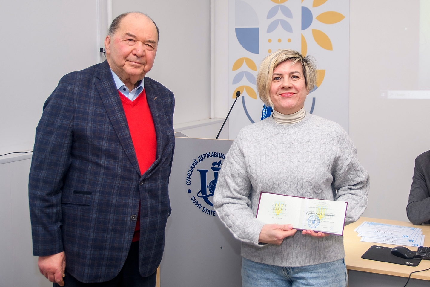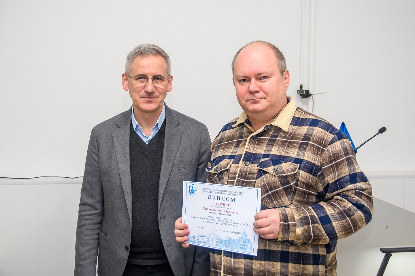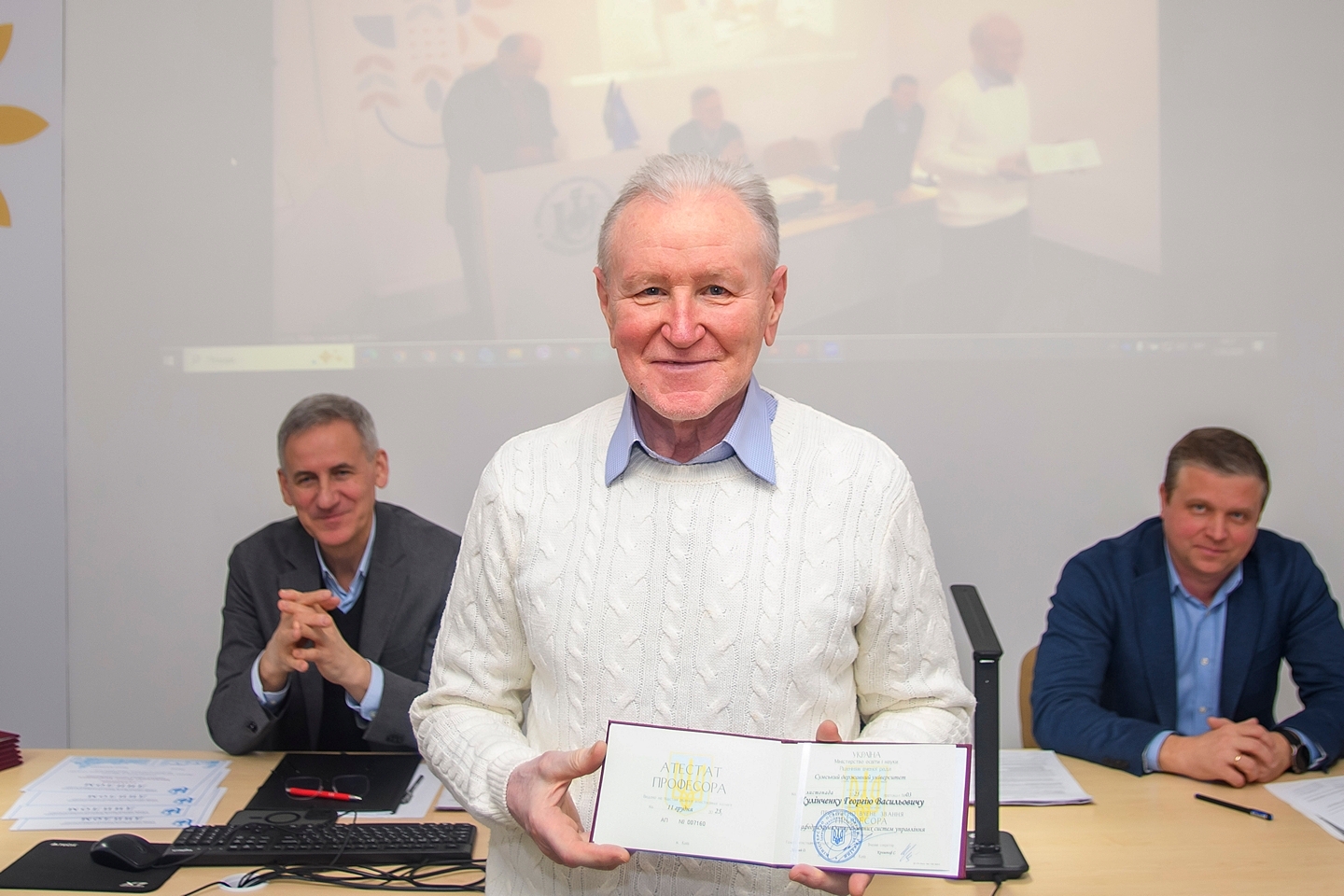 Під час засідання також було вручено атестати професора і доцента. Переможці конкурсу «Кращі науково-педагогічні працівники СумДУ» за підсумками 2024-2025 навчального року отримали дипломи:
