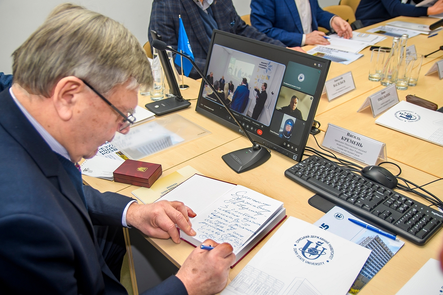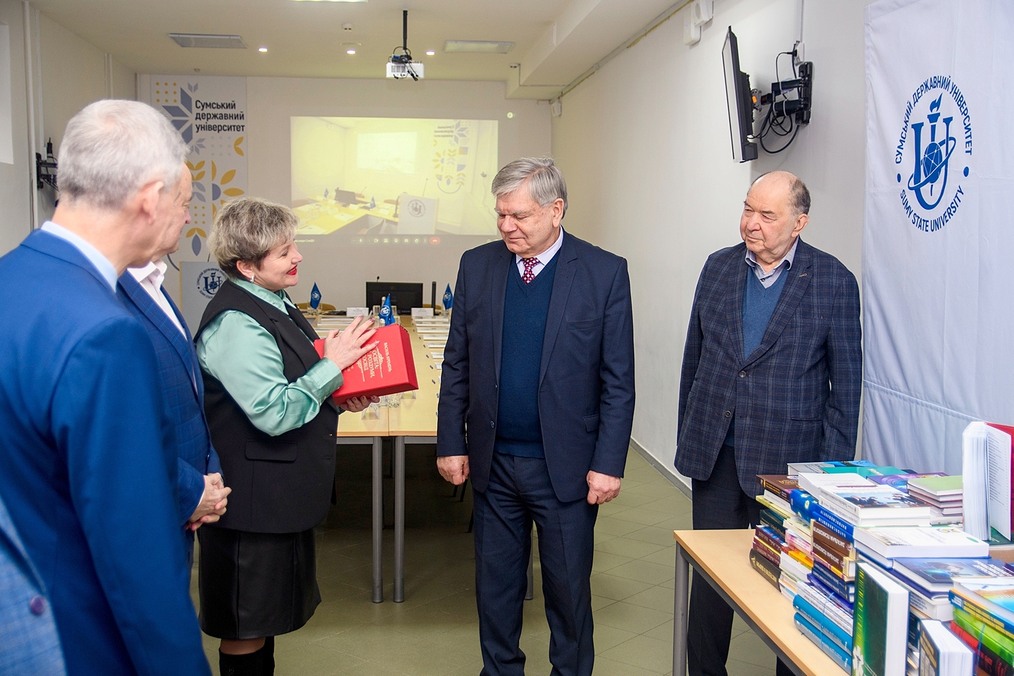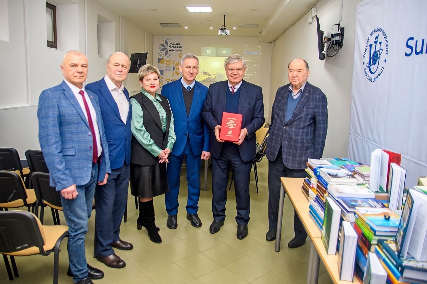 У межах візиту Василь КРЕМЕНЬ передав бібліотеці СумДУ, фонди якої постраждали внаслідок ворожих обстрілів, близько 400 примірників науково-освітньої літератури. Серед переданих видань – п’ятитомник «Освіта: ідеї, роздуми, досвід» з авторським підписом і словами підтримки колективу університету: «Сумському державному університету – з глибокою повагою, вдячністю колективу за видатні досягнення та героїчну стійкість в часи російської агресії. Слава СумДУ! Слава Україні!».