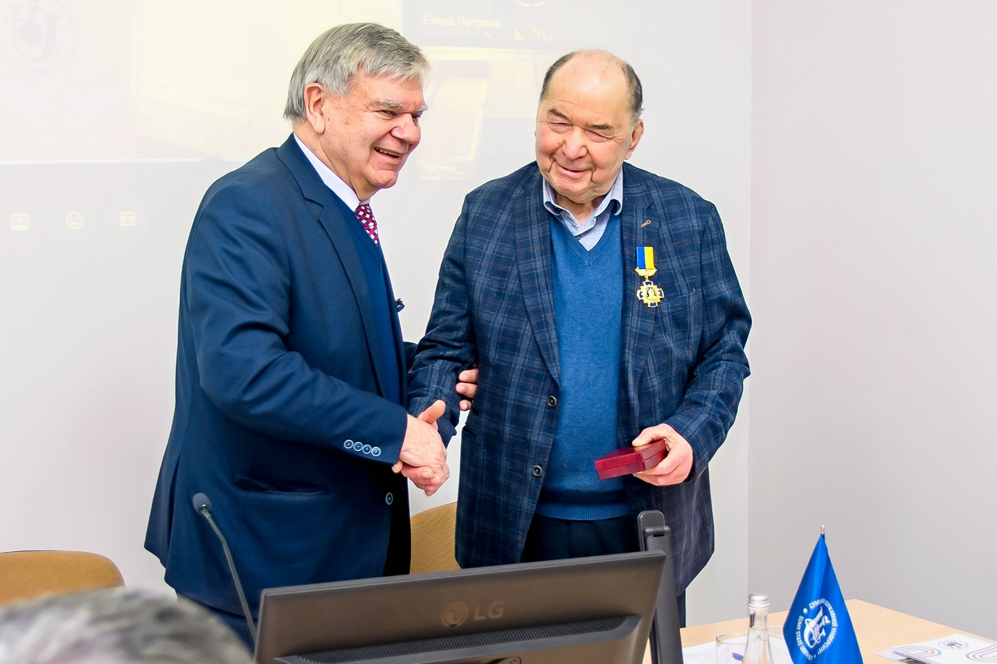 Засідання розпочалося з урочистої події – вручення найвищої відомчої нагороди НАПН України, медалі «Володимир Мономах». Нагороду отримав голова Вченої ради СумДУ Анатолій ВАСИЛЬЄВ.