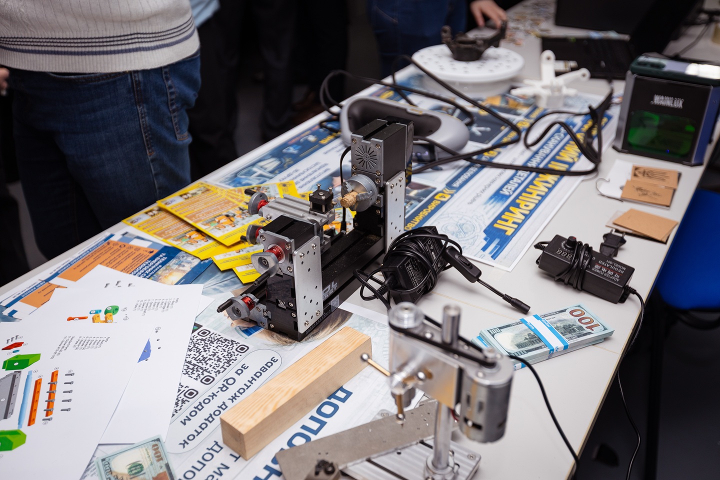- Кафедра комп’ютерної механіки імені В. Марцинковського демонструвала мініатюрні ЧПК-верстати, елементи турбомашин і оптоволоконні технології, а також надавала можливість створювати власні 3D-моделі та працювати з інженерними симуляціями.