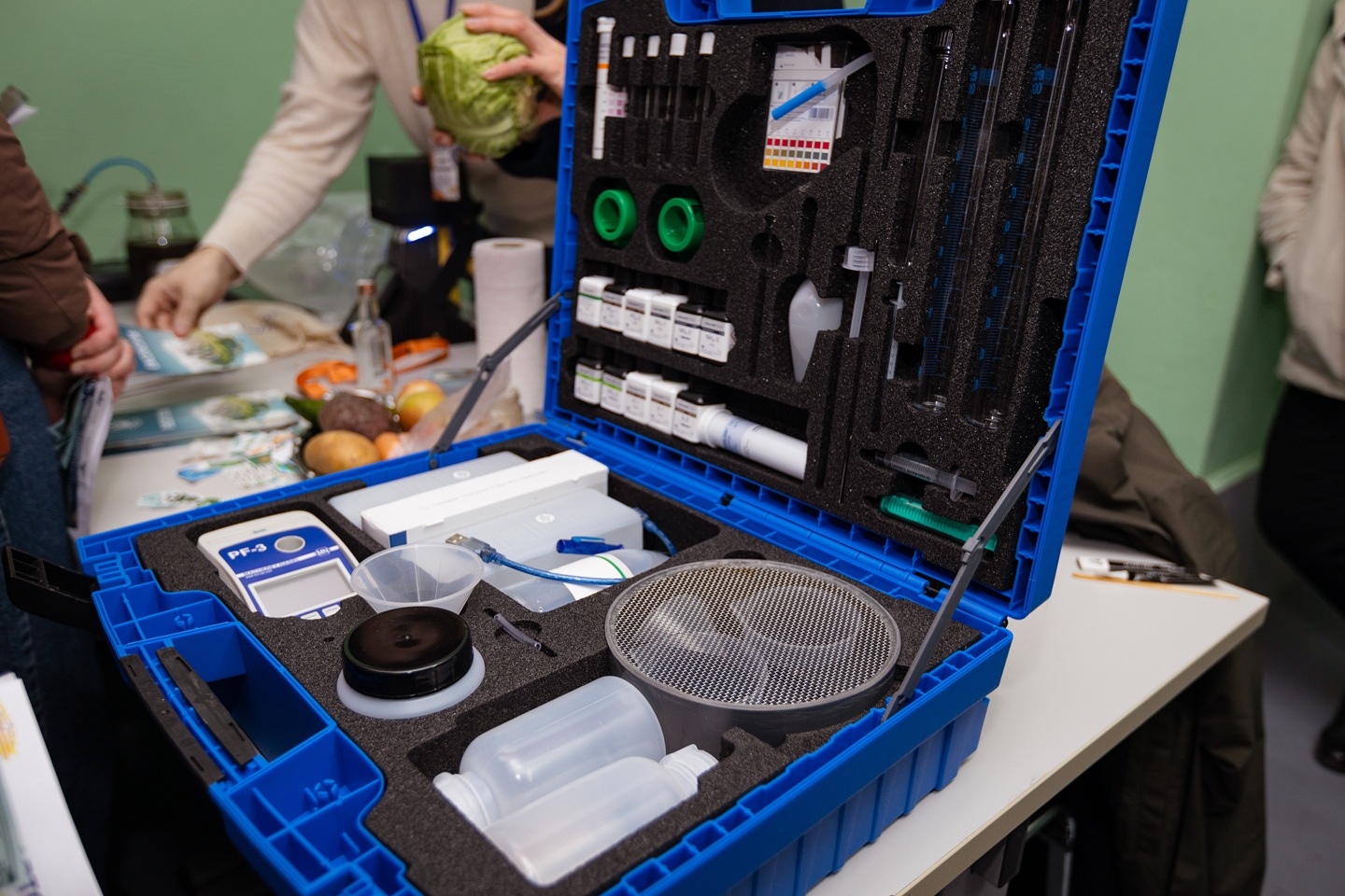 - Кафедра екології та природозахисних технологій організувала лабораторні дослідження: визначення складу ґрунтів і продуктів, аналіз води за допомогою тест-наборів VISOCOLOR, демонстрацію роботи газоаналізатора Biogas 5000 та рентгенофлуоресцентного аналізатора.