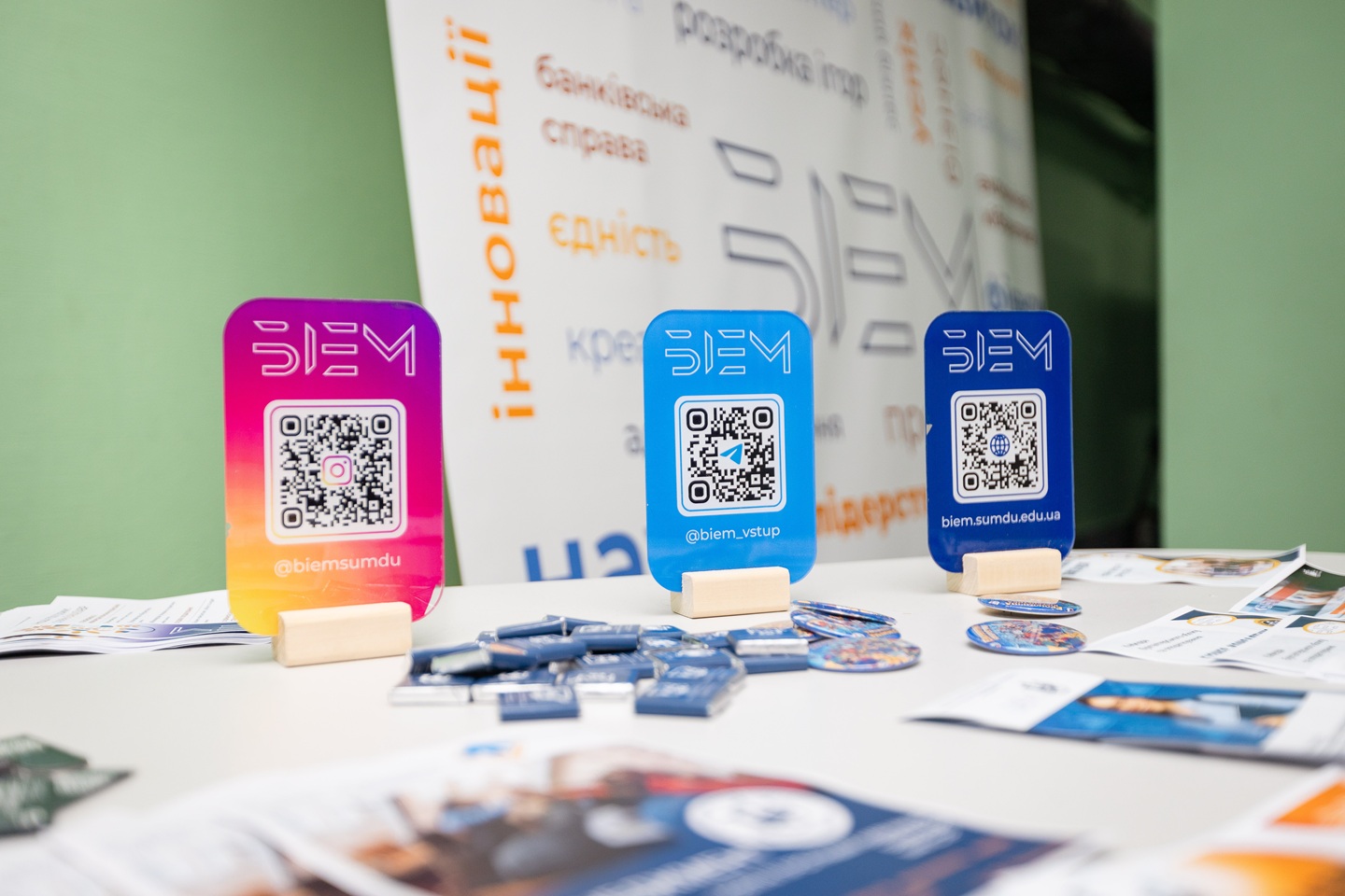 У навчально-науковому інституті бізнесу, економіки та менеджменту гості локацій створювали власні портрети на загальному плакаті, знайомилися з картою професій та отримували багато сувенірів від інституту.