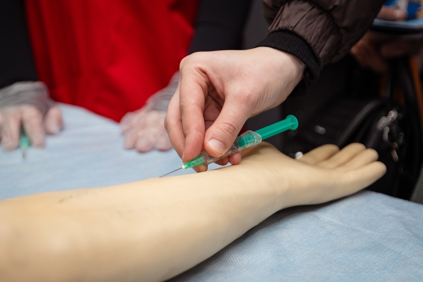 У навчально-науковому медичному інституті абітурієнти мали змогу спробувати себе в ролі медиків: навчалися проводити серцево-легеневу реанімацію, накладати турнікети, дізнавалися про внутрішньовенні ін’єкції, визначали групу крові та навіть пломбували гіпсову модель зуба.