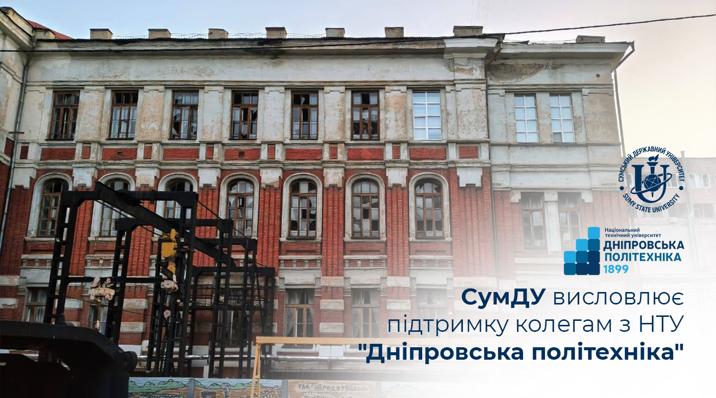 Сумський державний університет висловлює щиру солідарність і підтримку колегам із Дніпра. Ми на власному досвіді знаємо, наскільки важко бачити понівеченими аудиторії, де гартується майбутнє нації. Проте незламність колективу «Дніпровської політехніки», який уже розпочав ліквідацію наслідків, та активна допомога випускників і друзів університету вкотре доводять: ворог може пошкодити стіни, але не зможе зламати дух нашої академічної спільноти.
