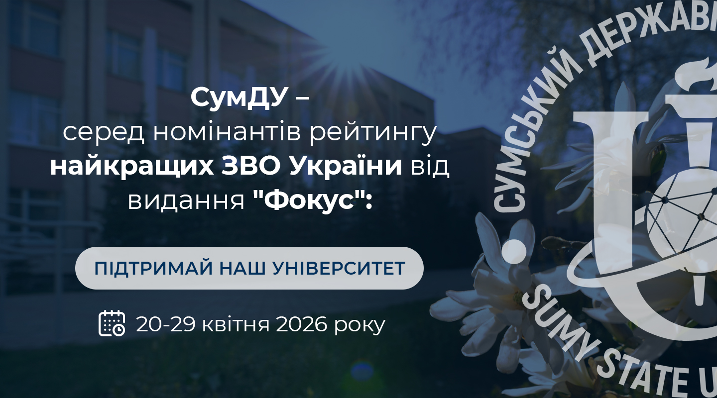 Триває відкрите голосування в онлайн-рейтингу «Топ 25 університетів України – 2026», який проводить видання «Фокус». Сумський державний університет – серед 59 претендентів на лідерство.