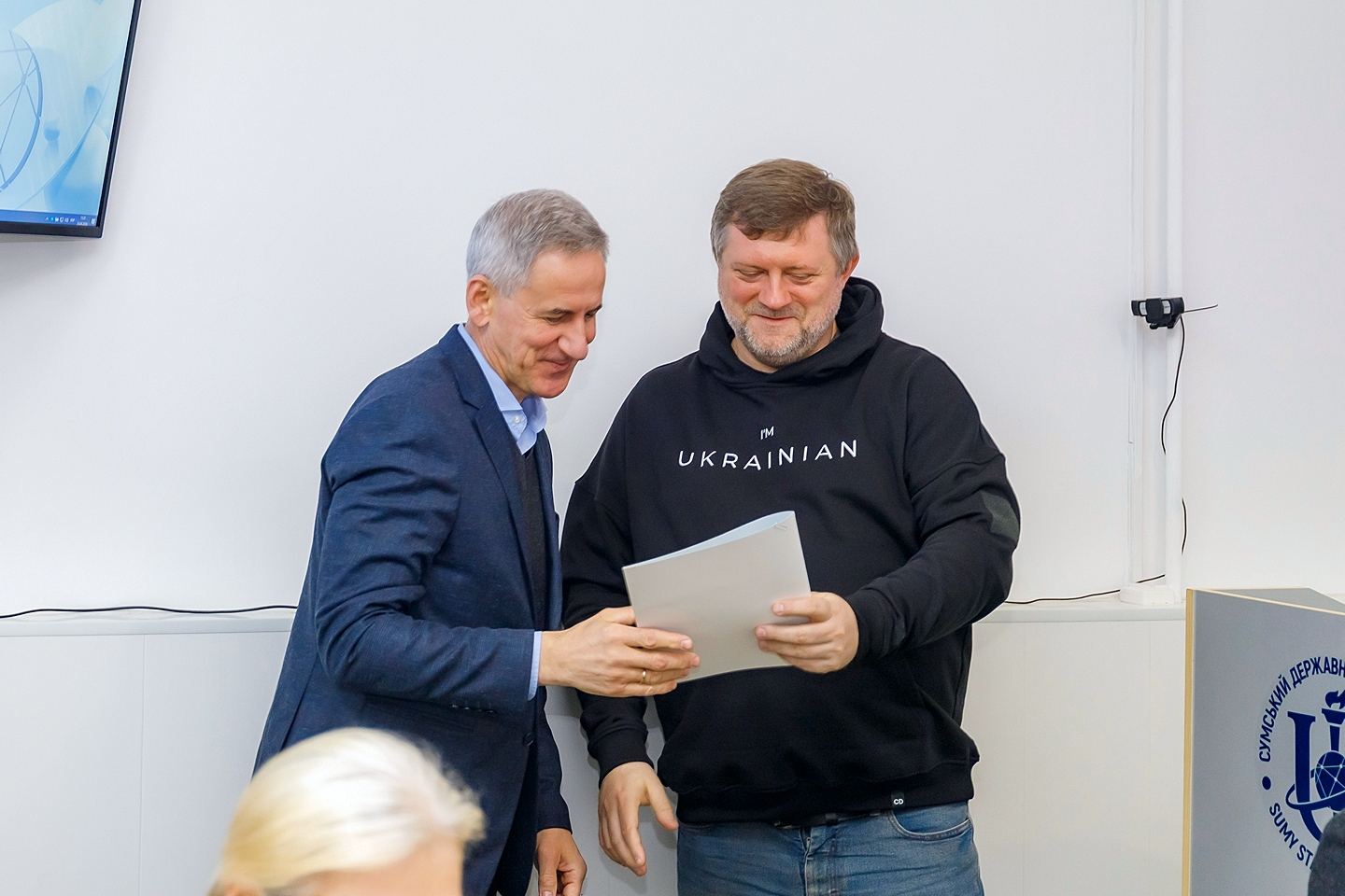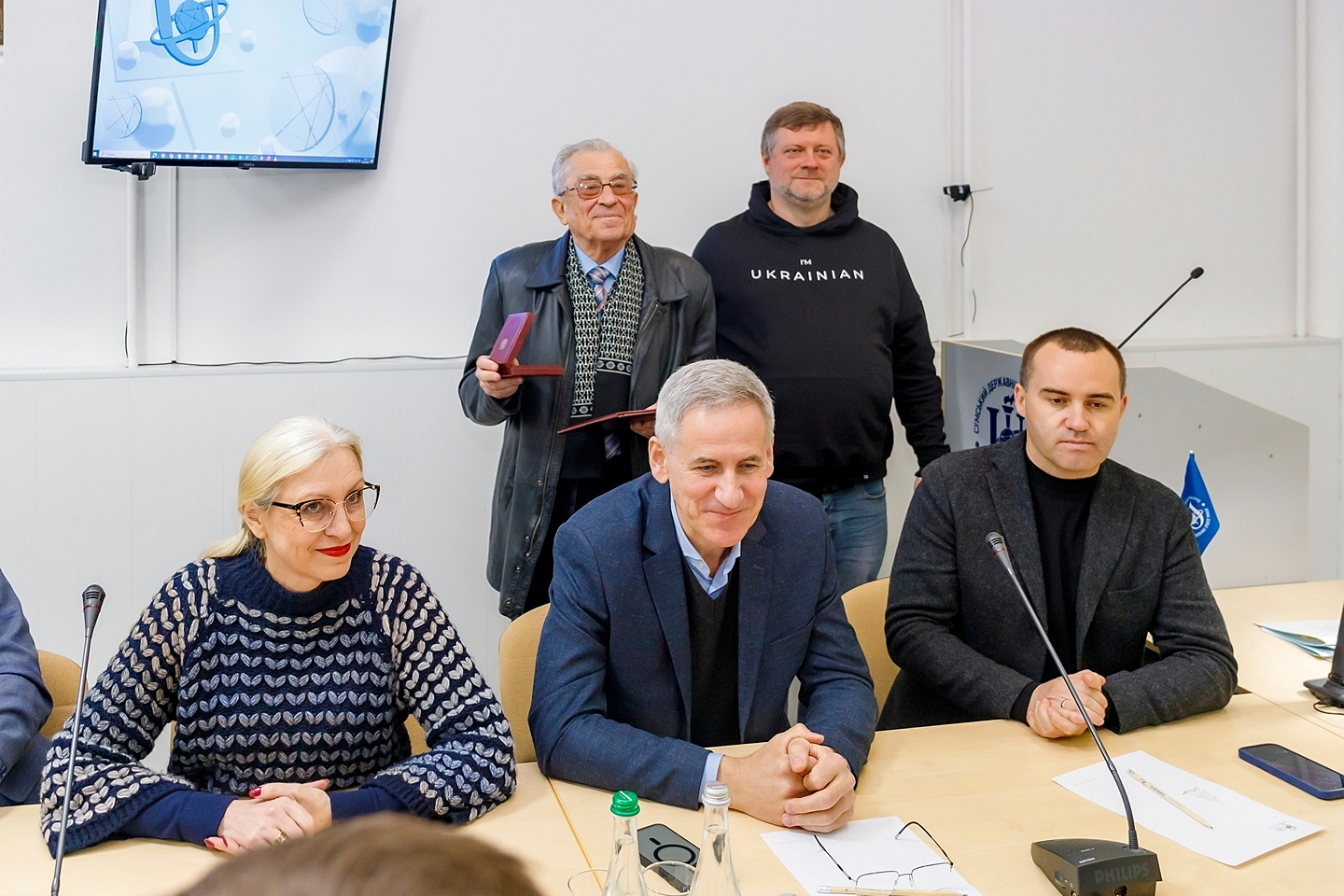У межах заходу відбулося нагородження представників освітньої спільноти та місцевого самоврядування. Почесну грамоту Верховної Ради України за особливі заслуги перед Україною Олександр Корнієнко вручив професору кафедри морфології СумДУ Віталію СІКОРІ. Грамотою першого заступника Голови Верховної Ради України відзначено Василя КАРПУШУ.